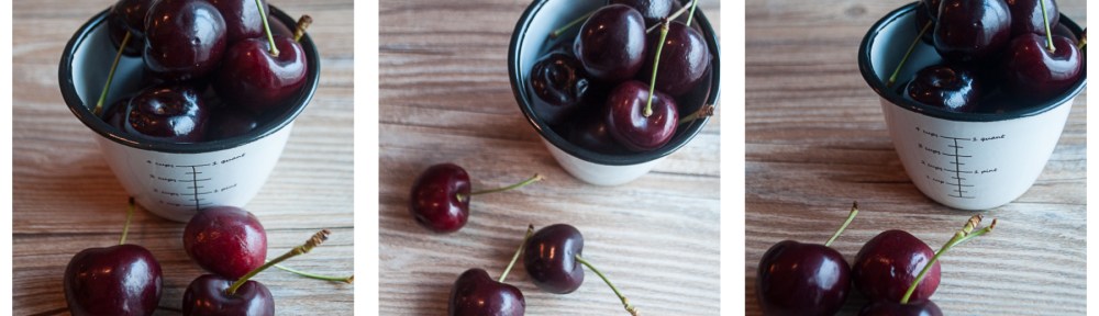 Family legend has it that I swallowed all the pits when I ate cherries for the first time… and I actually believed that when my dad told me a cherry tree would be growing on my head (in fact I was pretty excited about that!!!). Twenty some years have passed, there is no cherry tree on my head, but my fondness for the fruit continues to deepen. When cherries appear at my local market, I just have to buy them. Sweet, crisp and juicy, they often don’t even make it to my kitchen- I usually gobble them all up on my way home. But if there  are a few left, I will use them to make this dessert.